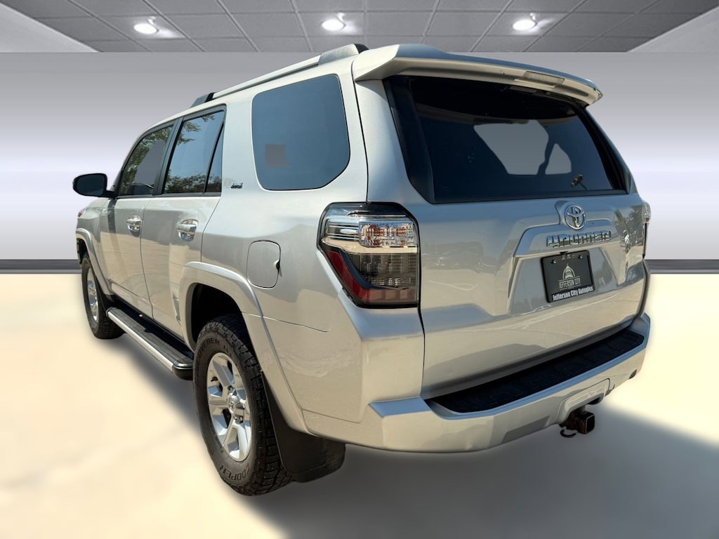 Classic Silver Metallic! This 2019 Toyota 4Runner SR5 comes complete with Four Wheel Drive, Tow Hitch, Brake Assist, Daytime Running Lights, Bluetooth Connection, Immobilizer, Traction Control, Stability Control, Back-Up Camera and much more. Our highly trained technicians inspected and re-conditioned this vehicle. No hassles. No worries. Peace of mind. We want our customers here at Hyundai of Jefferson City to be customers for life. Being car-owners ourselves, it's only fitting that we'd provide our customers with the kind of courtesy, service and respect that we would expect. We not only want you to feel this way during the shopping phase but also years later when you look for your next ride! We have a full parts and service department and certified technicians. No matter what make or model we have got you covered! Please chat, email, or call to verify any information in question and to schedule your VIP test drive. Experience the difference for yourself at the Hyundai of Jefferson City, located at 3215 Missouri Blvd, Jefferson City, MO 65109. Call us or visit us anytime. www.HyundaiofJeffersonCity.com